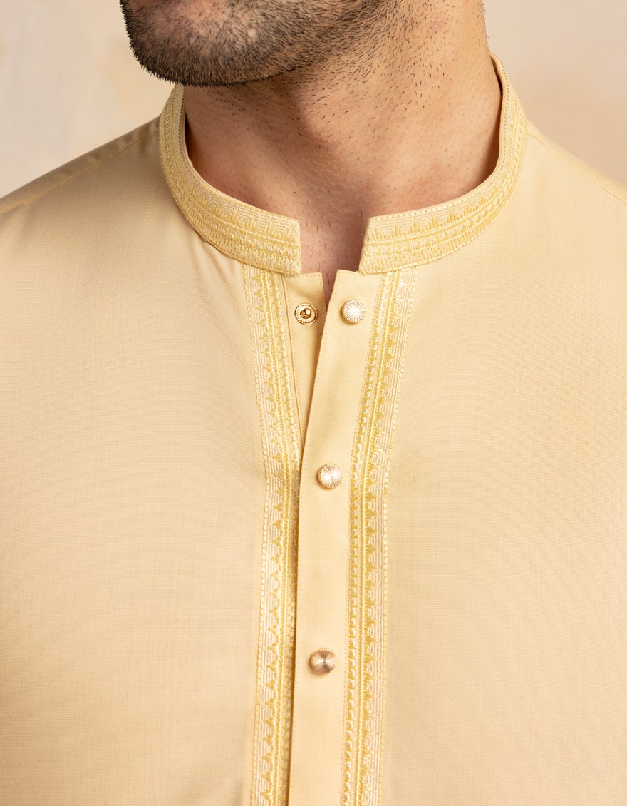 Cream Blended Embroidered Kurta Trouser